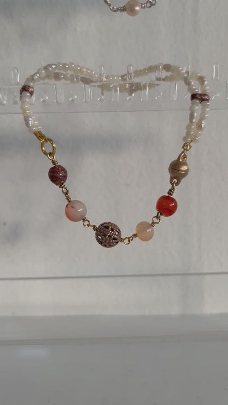 Unique bracelets handmade from upcycled materials. All metals, beads and pearls are recycled from factories or handpicked at street markets and second hand shops across the world.