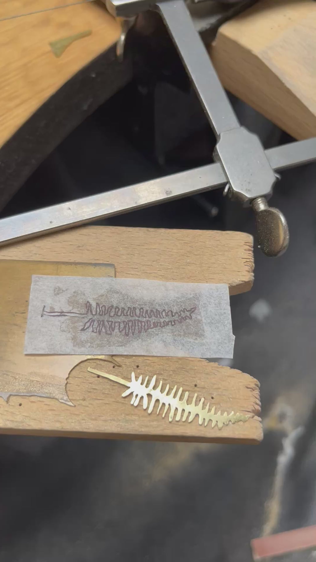 Black Murano spacer bead with fern-shaped pendant in recycled, cut and polished brass