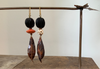 Earrings with handmade copper leaf pendant and beads from wood and bone