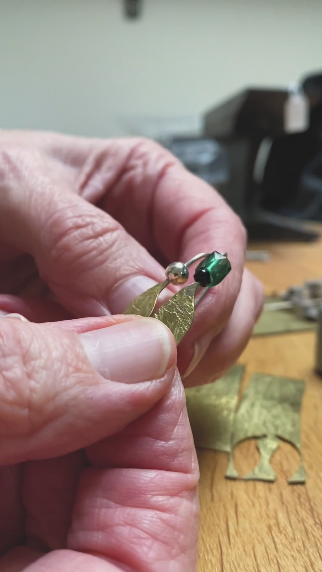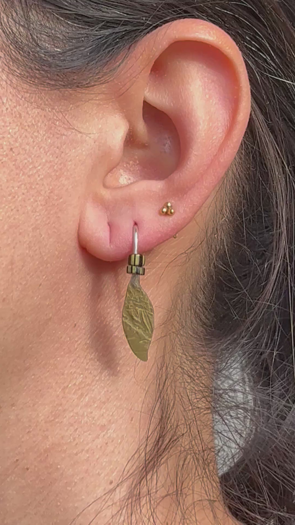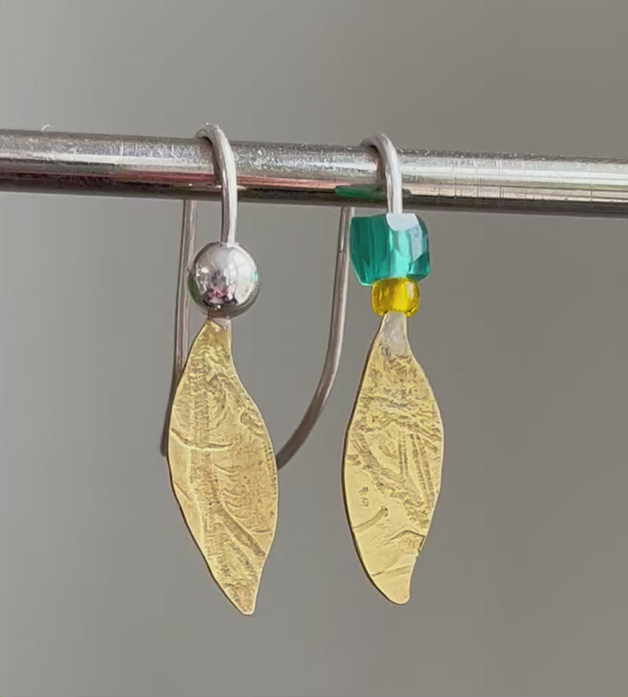 Upcycled sterling and brass Earrings with embossed pattern from plants. The beads are exchangeable (silver and antique Russian Blue glass bead, facetted made in Bohemia late 1800)